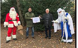 Das Spendenergebnis konnte sich sehen lassen. Am Schluss überreichte Robert Mosberg von Lekker Energie (Mitte links) bei weihnachtlicher Begleitung einen Scheck in Höhe von EUR 4.500,- für die Aktion Augen-Licht an Siegfried Helias (Mitte rechts) von Together e. V.
